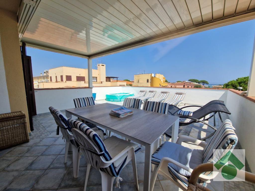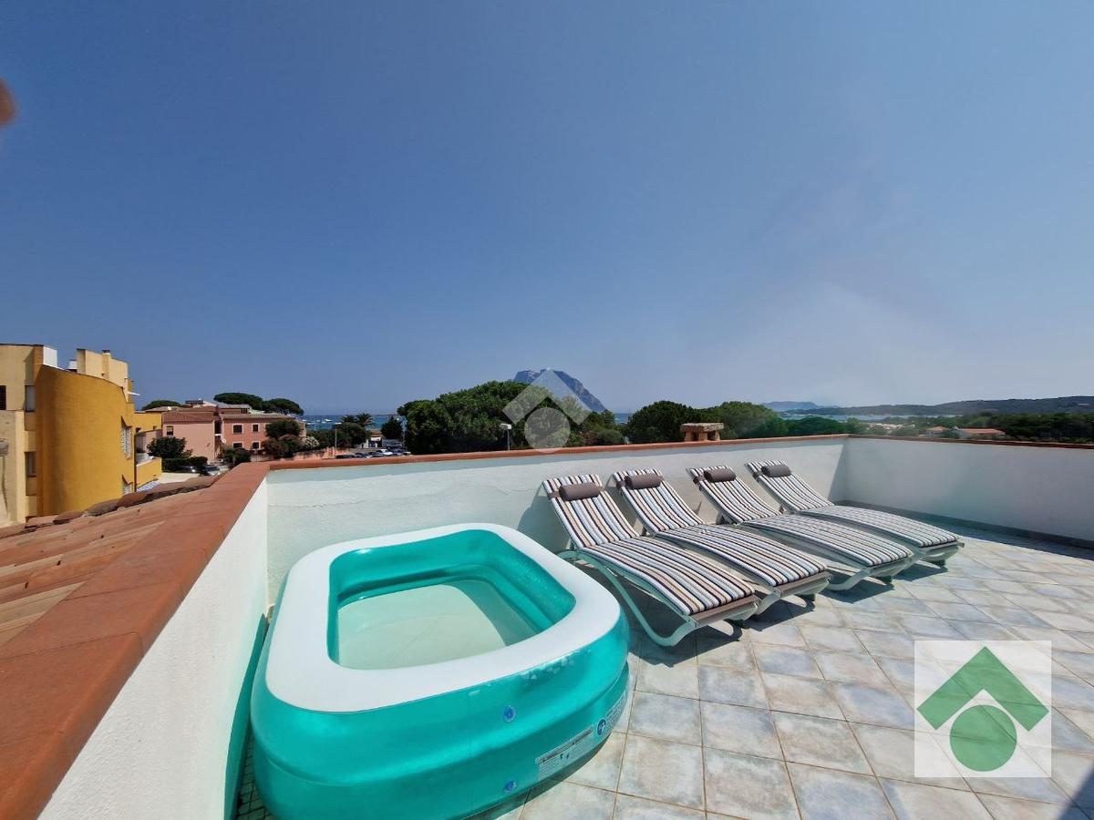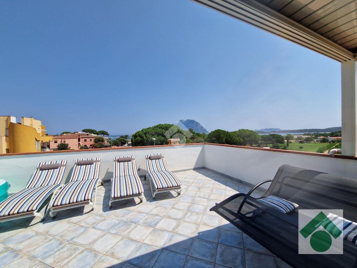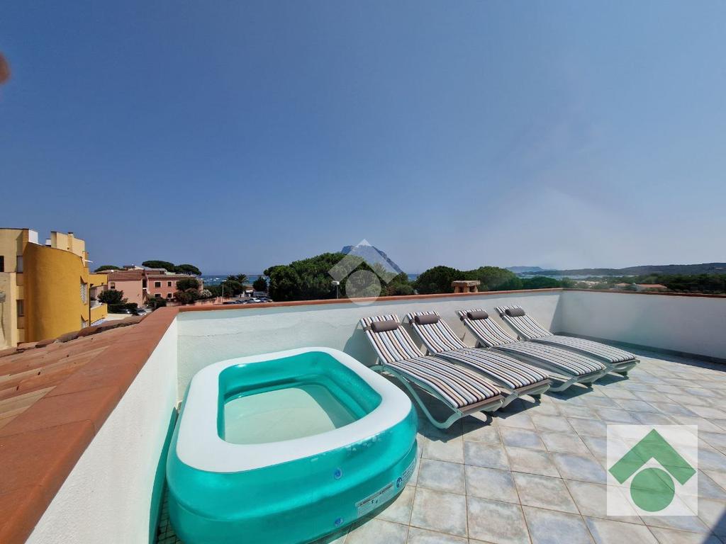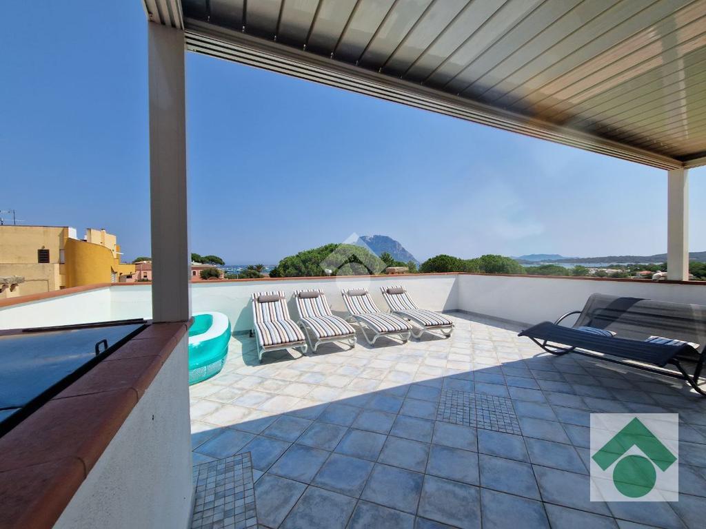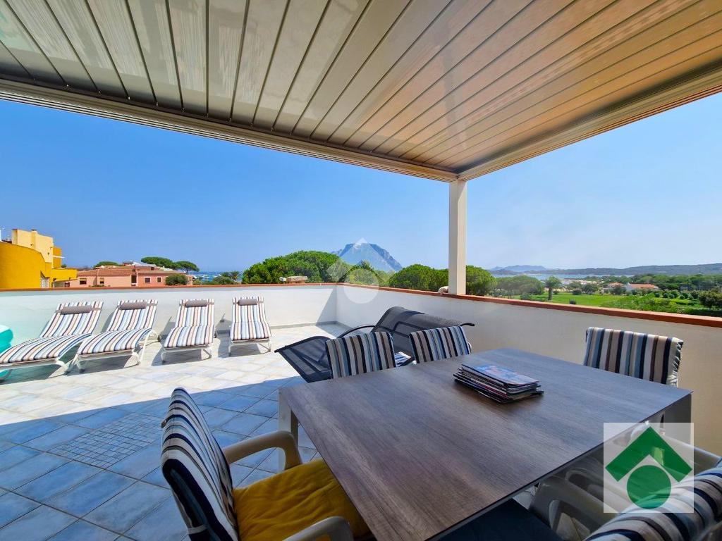 Fiore all’occhiello della proprietà è l’ampia veranda di circa 50 mq, perfetta per pranzi all’aperto e momenti di relax, da cui si può godere di una suggestiva vista sul mare e sull’isola di Tavolara.