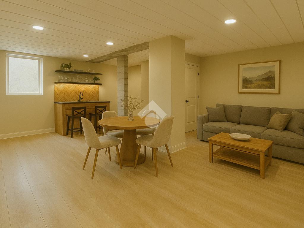 Tramite una scala esterna si accede al piano sottostante, dove troviamo un ampio spazio che potrà essere adibito a taverna, sala hobby o area relax, con la possibilità di rendere il piano completamente indipendente, soluzione ideale anche per ospiti o per un utilizzo multifunzionale.