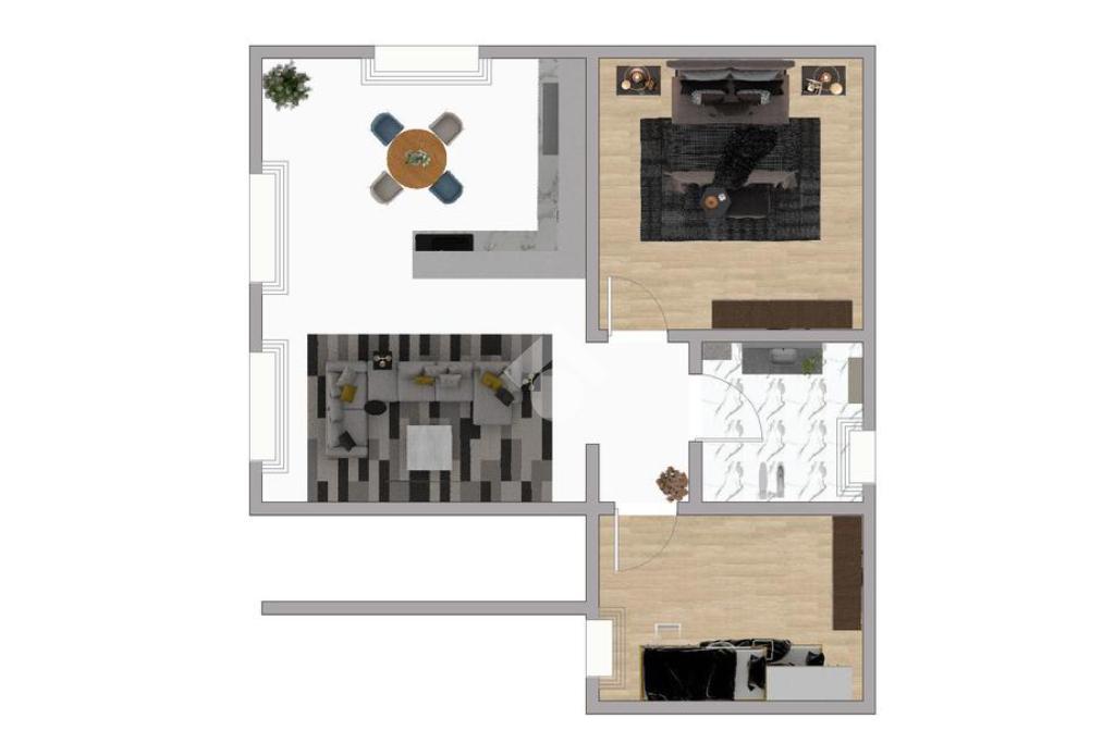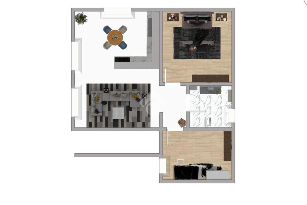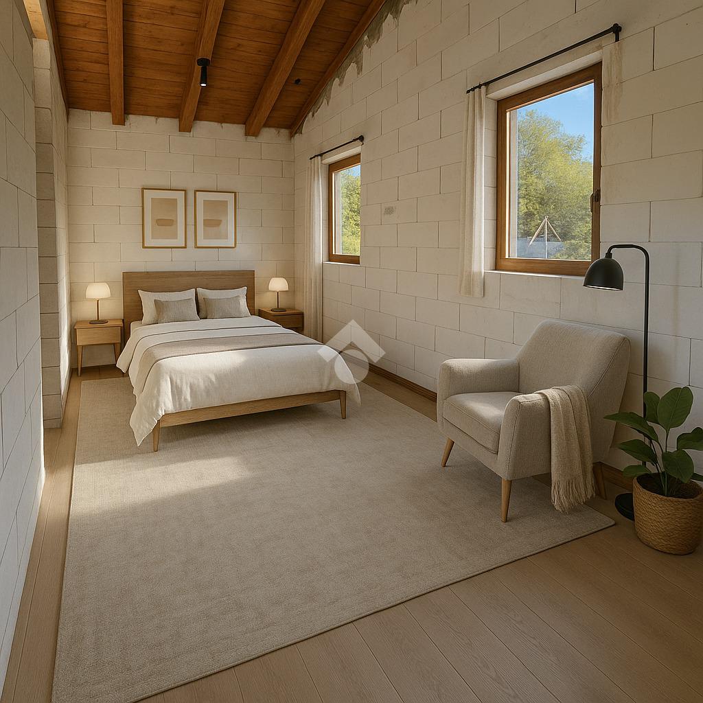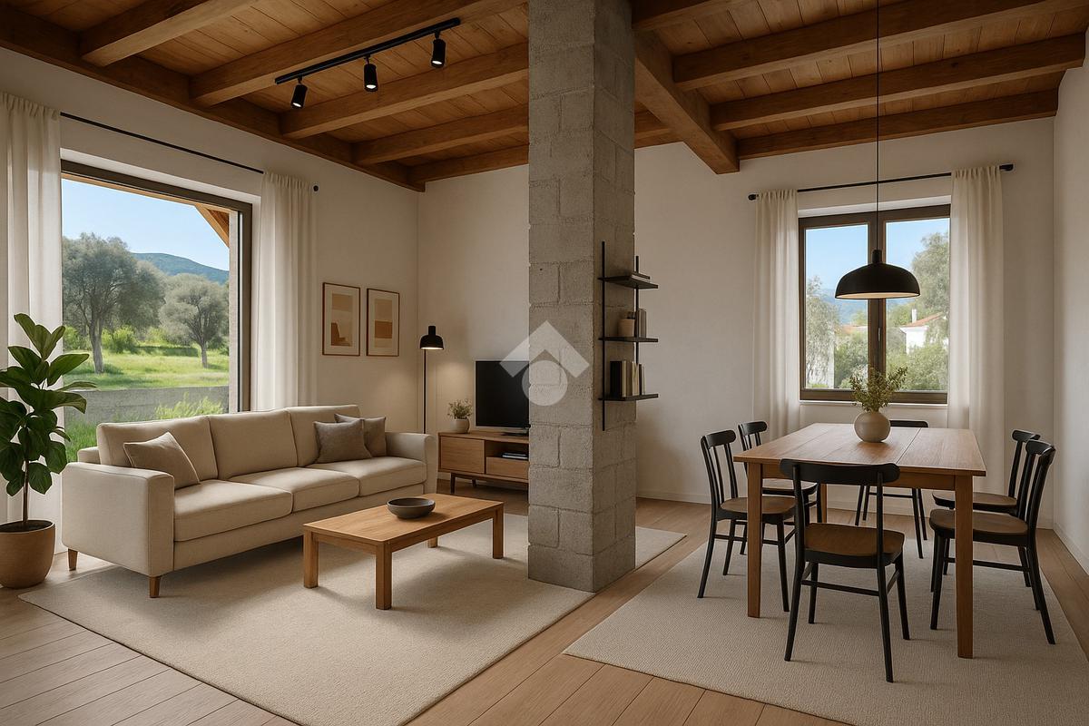 All’interno, l’abitazione si apre su una zona living luminosa con cucina a vista, progettata per un utilizzo pratico e funzionale degli spazi. La distribuzione interna prevede inoltre una camera da letto matrimoniale, una seconda camera e un bagno finestrato con doccia, con ambienti studiati per offrire comfort e razionalità.