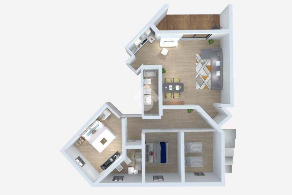Un disimpegno conduce alla zona notte, dove troviamo una cameretta doppia, due camere matrimoniali di cui una dotata di bagno privato con vasca/doccia e un secondo bagno con doccia.